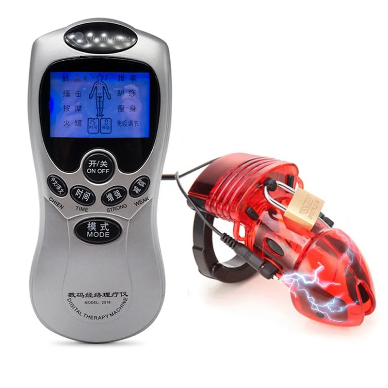 INS Factory Price Electro Shock Male Chastity Device Cock Cage With Adjustable Cuff Ring Adult Lock Belt Sex Toys for Men